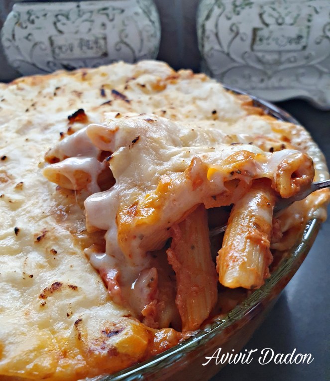 שולקים את הפנה במים רותחים עם 2 כפות שמן וכף מלח. כשהפנה מוכן מסננים את הנוזלים ומעבירים אותו לתבנית פיירקס, או כל תבנית שנכנסת לתנור.להכנת הרוטב: מטגנים את הבצל והשום בחמאה עד להזהבה, מוסיפים את העגבניות המגורדות ומעט מלח ומבשלים עד שהנוזלים מהעגבניות מצטמצמים. מוסיפים שמנת לבישול, רסק עגבניות, תבלינים ומבשלים על אש נמוכה עד שמתקבל רוטב אחיד וסמיך מעט.שופכים את הרוטב על הפנה, מפזרים גבינת מוצרלה ומכניסים לתנור על חום גבוה להקרמה. לאפות עד שהגבינה מזהיבה……וזהו!זריז וטעים, כמו שאני אוהבת 🙂