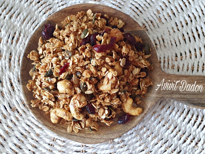 בסיום האפייה נוסיף את החמוציות,נקרר ונאחסן בכלי אטום.