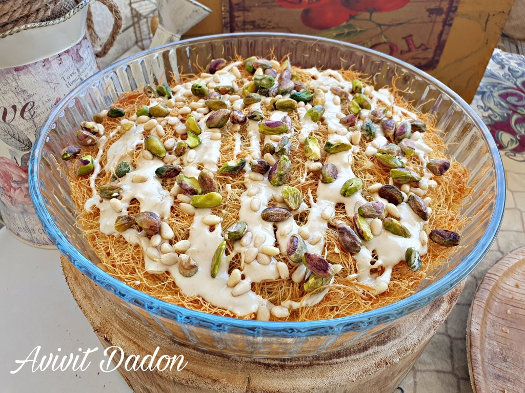 לזילוף: טחינה מוכנה, חופן פיסטוקים קלופים, חופן צנוברים