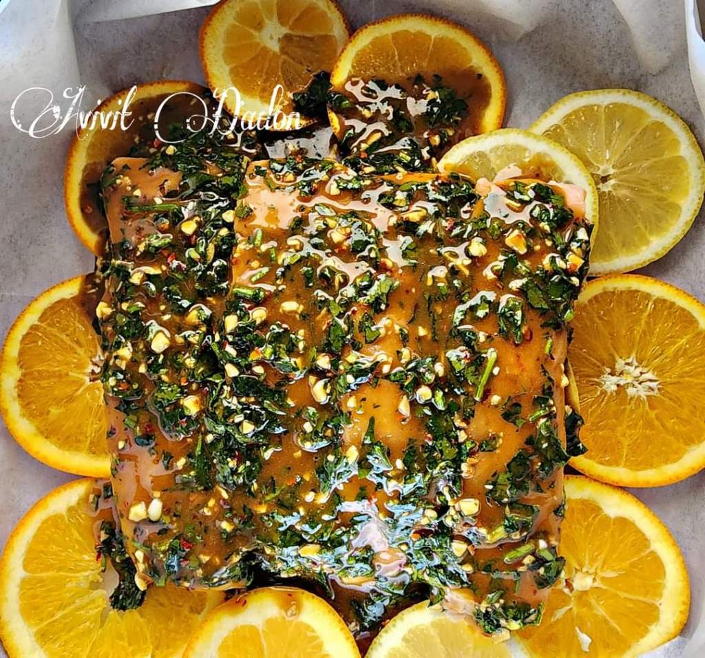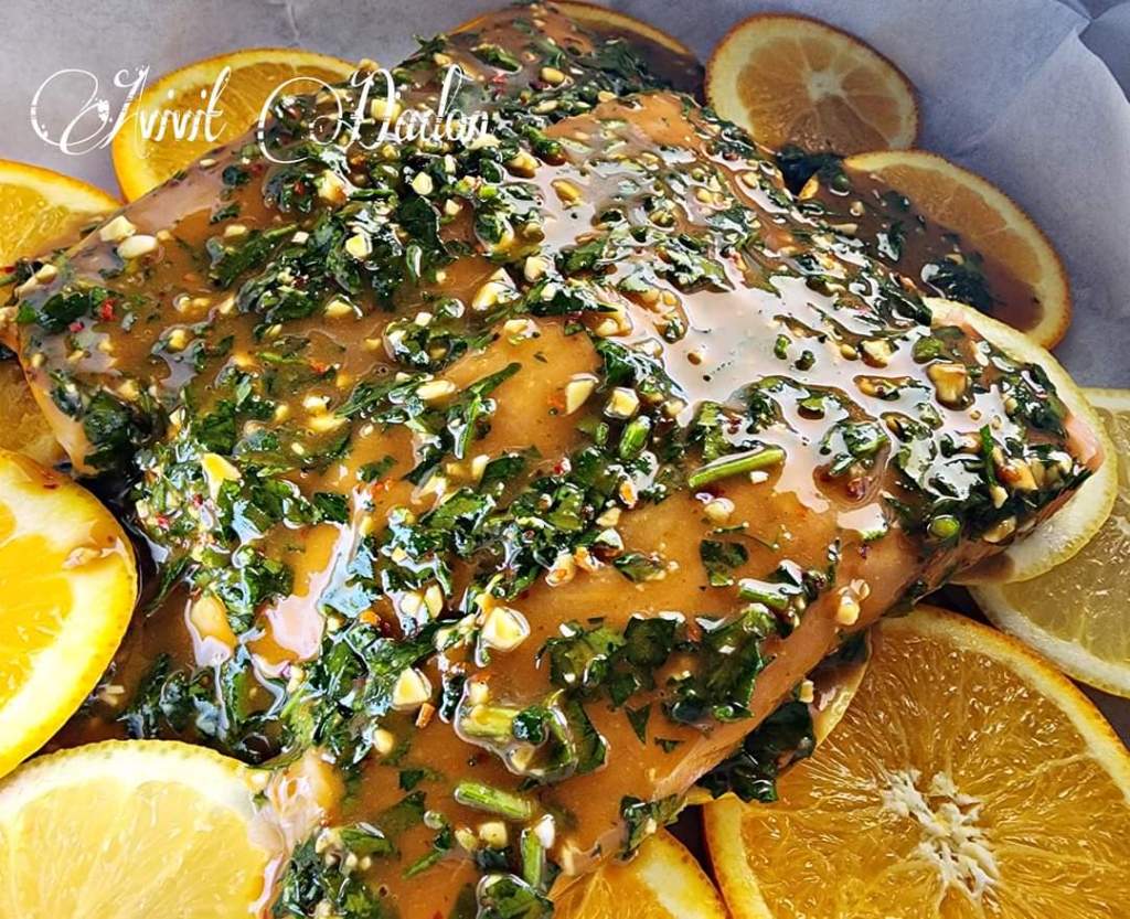 בקערה נערבב היטב את כל מרכיבי הרוטב ונשפוף בנדיבות על נתחי הדג.