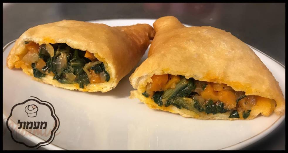בצק מטוגן ממולא בסלט עלי מנגולד חריף