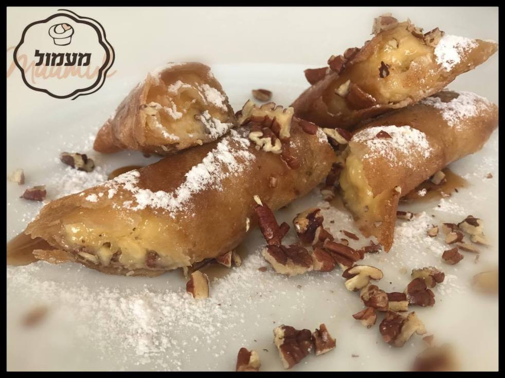 פינוק מושלם לאוהבי הבננות. מצרכים: 5 בננות 1/3 כוס קוקוס 5 עלי סיגר (מופשרים) 50 גרם חמאה 1/2 כוס סוכר 50 גרם פקאן קצוץ שמן לטיגון לקישוט: אבקת סוכר, סירופ מייפל אופן ההכנה: בסיר קטן נמיס חמאה עם סוכר ונקרר מעט. נפתח עלה סיגר, נמרח את חציו בחמאה המומסת עם הסוכר. ניקח בננה (קלופה) ונגלגל אותה… להמשיך לקרוא סיגר בננה ופקאן